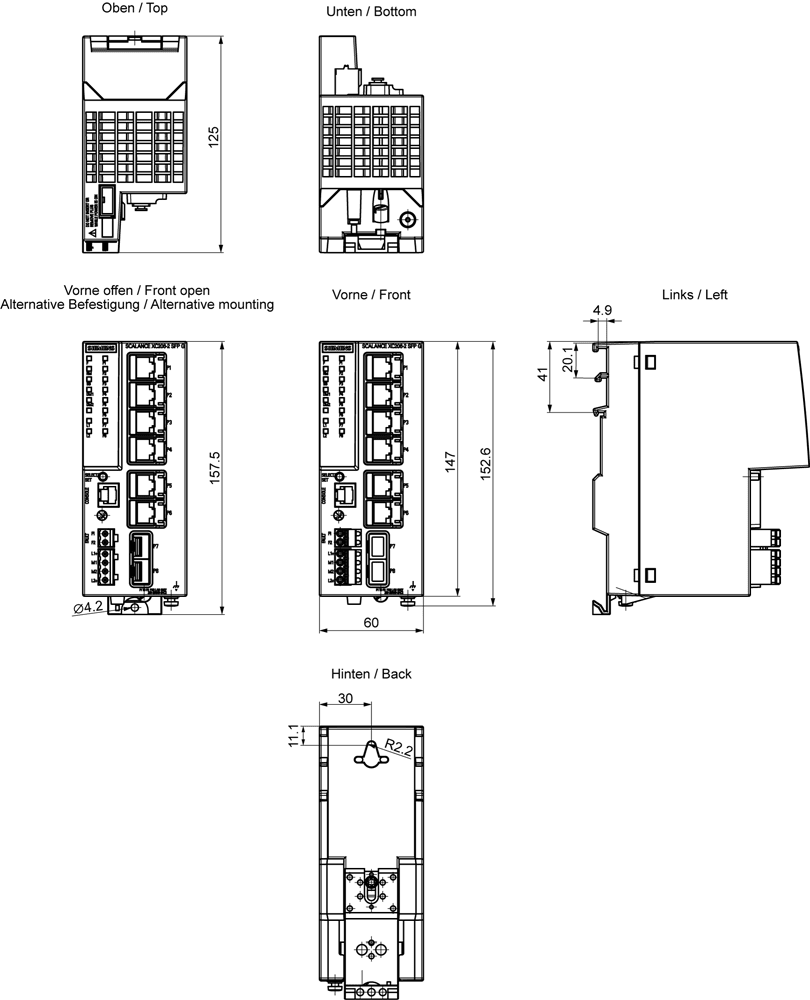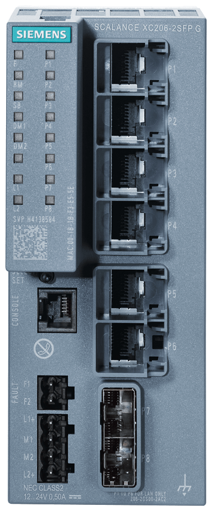 SCALANCE XC206-2SFP G manageable IE Switch di Layer 2; certificato IEC 62443-4-2; 6x 10/100/1000 Mbit/s porte RJ45;2x 1000 Mbit/s SFP; 1x porta console; LED di diagnostica; alimentazione di tensione ridondante; campo di temp.-40°C...+70°C; montaggio: su guida DIN/profilata S7/a parete; funzioni di ridondanza; Office Features (RSTP, VLAN,...); PROFINET IO Device; conforme a Ethernet/IP; slot C-PLUG; IEEE 1588v2 PTP SCALANCE XC206-2SFP G, managed switch di Layer 2, 6x RJ45, 2x SFP. Indicato per numerose applicazioni: Lo SCALANCE XC206-2SFP offre unampia varietà di switch Ethernet altamente performanti in diverse varianti: dagli switch Gigabit agli switch robusti per i requisiti dellautomazione discreta e di processo. I potenti switch Gigabit SCALANCE XC206-2SFP sono stati sviluppati per rispondere ai difficili requisiti delle reti negli ambienti industriali. Grazie allhardware potente e alle funzioni avanzate, assicurano uninfrastruttura di rete affidabile e scalabile per qualsiasi applicazione. Realizzazione semplice e affidabile di molte applicazioni industriali.