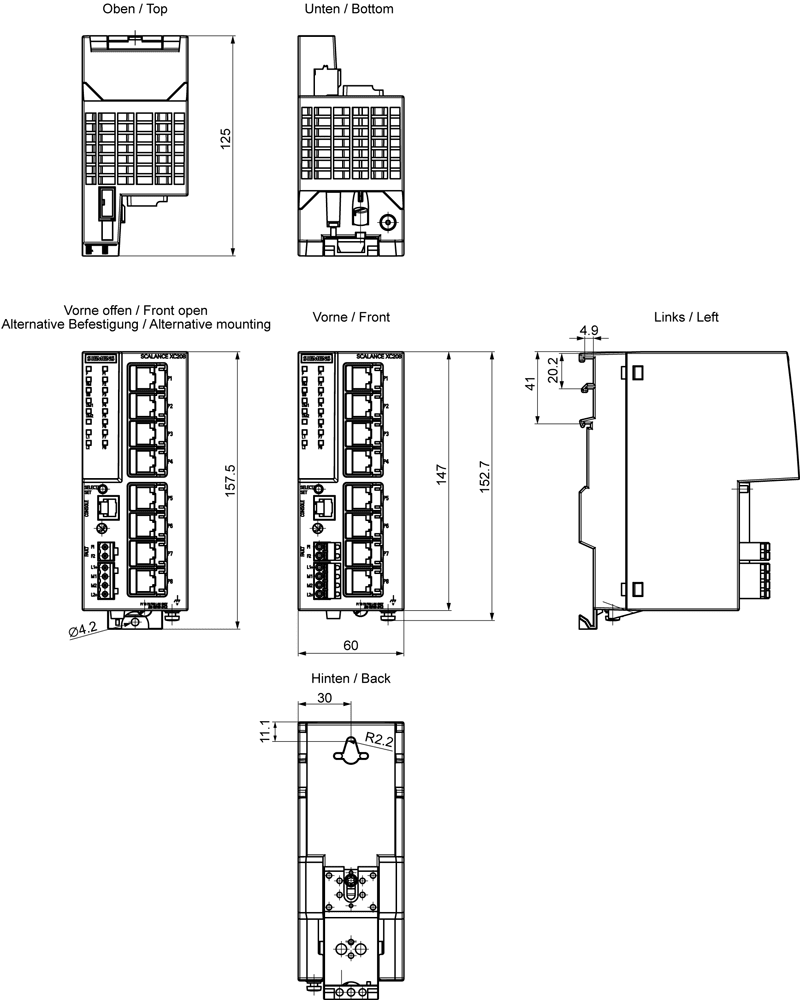 SCALANCE XC208 manageable IE Switch di Layer 2; certificato IEC 62443-4-2; 8x porte RJ45 da 10/100 Mbit/s; 1x porta di console; LED di diagnostica; alimentazione di tensione ridondante; campo di temp.-40 °C...+70 °C; montaggio: guida DIN/profilata S7/a parete funzioni di ridondanza Office Features (RSTP, VLAN,...); PROFINET IO Device conforme a Ethernet/IP slot C-PLUG; SCALANCE XC208 managed, switch compatto di Layer 2, 8x RJ45 da 10/100 Mbit/s per Industrial Ethernet (PROFINET ed EtherNet/IP). Impiegabile nei settori più svariati: costruzione di macchine, industria automobilistica, industria dei generi alimentari e voluttuari, lungo linee di trasporto su rotaia o nellindustria del petrolio e del gas. Indicato per numerose applicazioni: Lo SCALANCE XC208offre unampia varietà di switch Ethernet altamente performanti in diverse varianti: dagli switch Gigabit agli switchrobusti per i requisiti dellautomazione discreta e di processo. I potenti switch Gigabit SCALANCE XC208 sono stati sviluppati per rispondere ai difficili requisiti delle reti negli ambienti industriali. Grazie allhardware potente e alle funzioni avanzate, assicurano uninfrastruttura di rete affidabile e scalabile per qualsiasi applicazione. Realizzazione semplice e affidabile di molte applicazioni industriali.