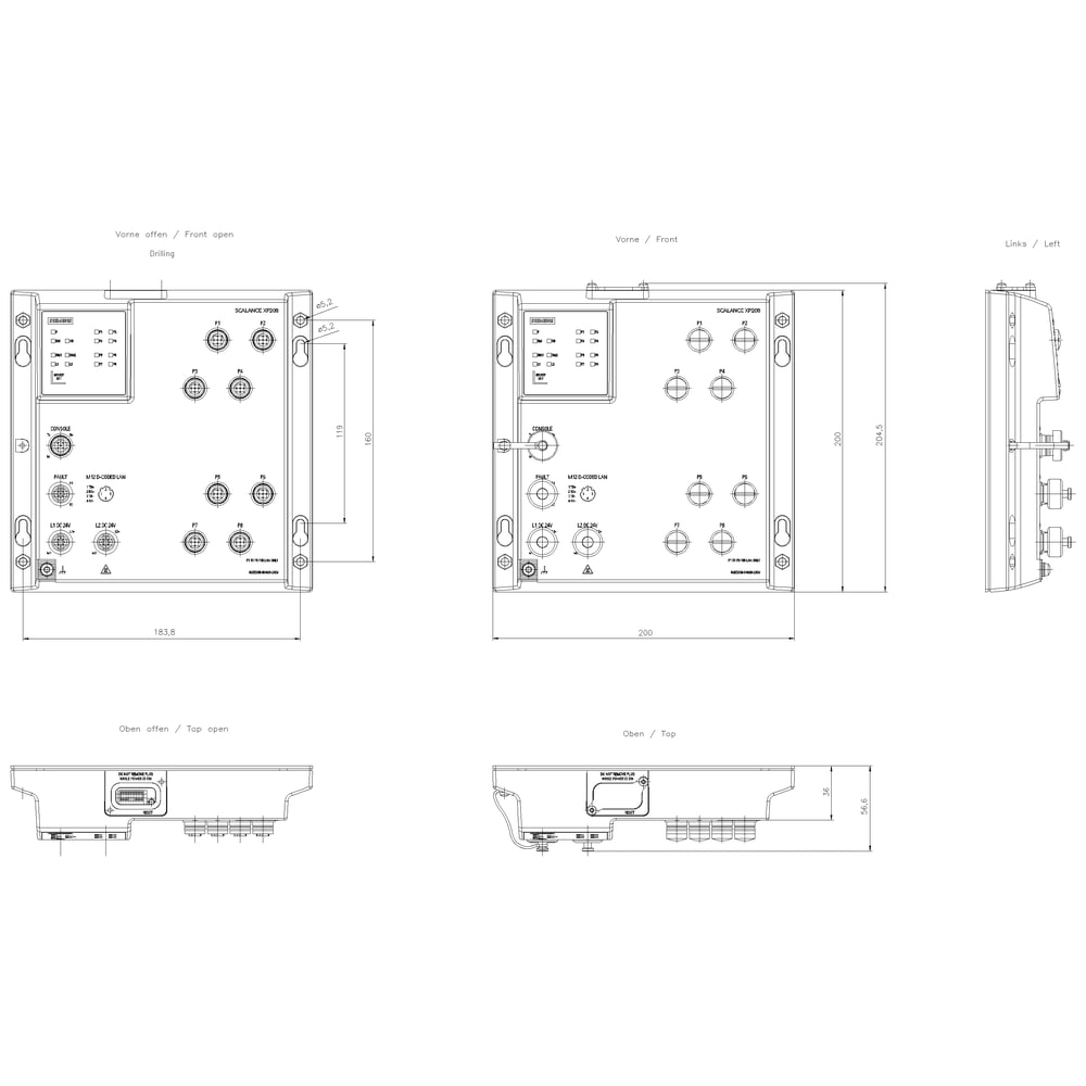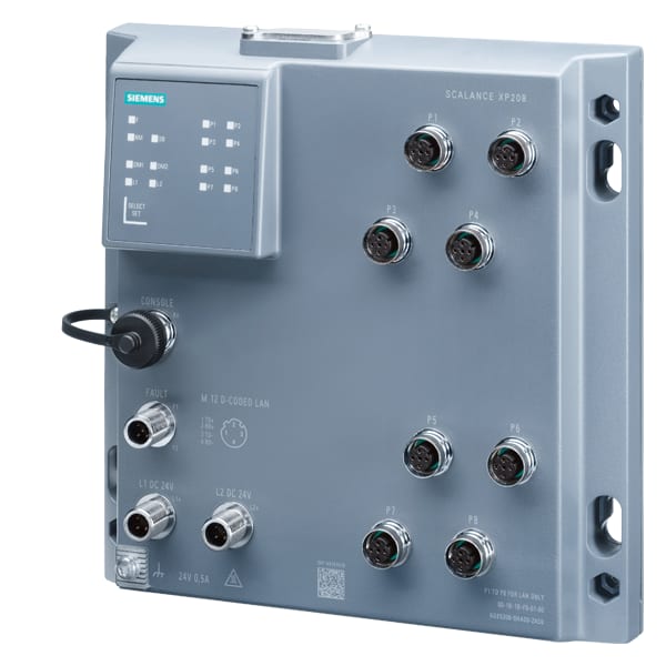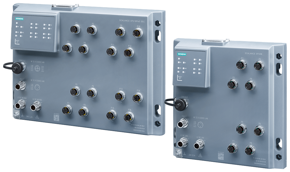 SCALANCE XP208, managed IE Switch, 8x porte 10/100 Mbit/s porte M12, IP65, diagnostica LED, contatto di segnalazione errore, alimentazione di tensione ridondante, certificato IEC 62443-4-2 PROFINET IO Device, Network Management, funzionante nellanello ridondante, cappucci di protezione antipolvere, incl. manuale elettr. su CD-ROM, C-PLUG opzionale. SCALANCE XP208 managed, protected switch di Layer 2, 8x M12 da 10/100 Mbit/s, IP65 per PROFINET ed EtherNet/IP, default: PROFINET, allesterno del quadro elettrico. Indicato per numerose applicazioni: Lo SCALANCE XP208 offre unampia varietà di switch Ethernet altamente performanti in diverse varianti: dagli switch Gigabit agli switch robusti per i requisiti dellautomazione discreta e di processo. I potenti switch Gigabit SCALANCE XP208 sono stati sviluppati per rispondere ai difficili requisiti delle reti negli ambienti industriali. Grazie allhardware potente e alle funzioni avanzate, assicurano uninfrastruttura di rete affidabile e scalabile per qualsiasi applicazione. Realizzazione semplice e affidabile di molte applicazioni industriali.