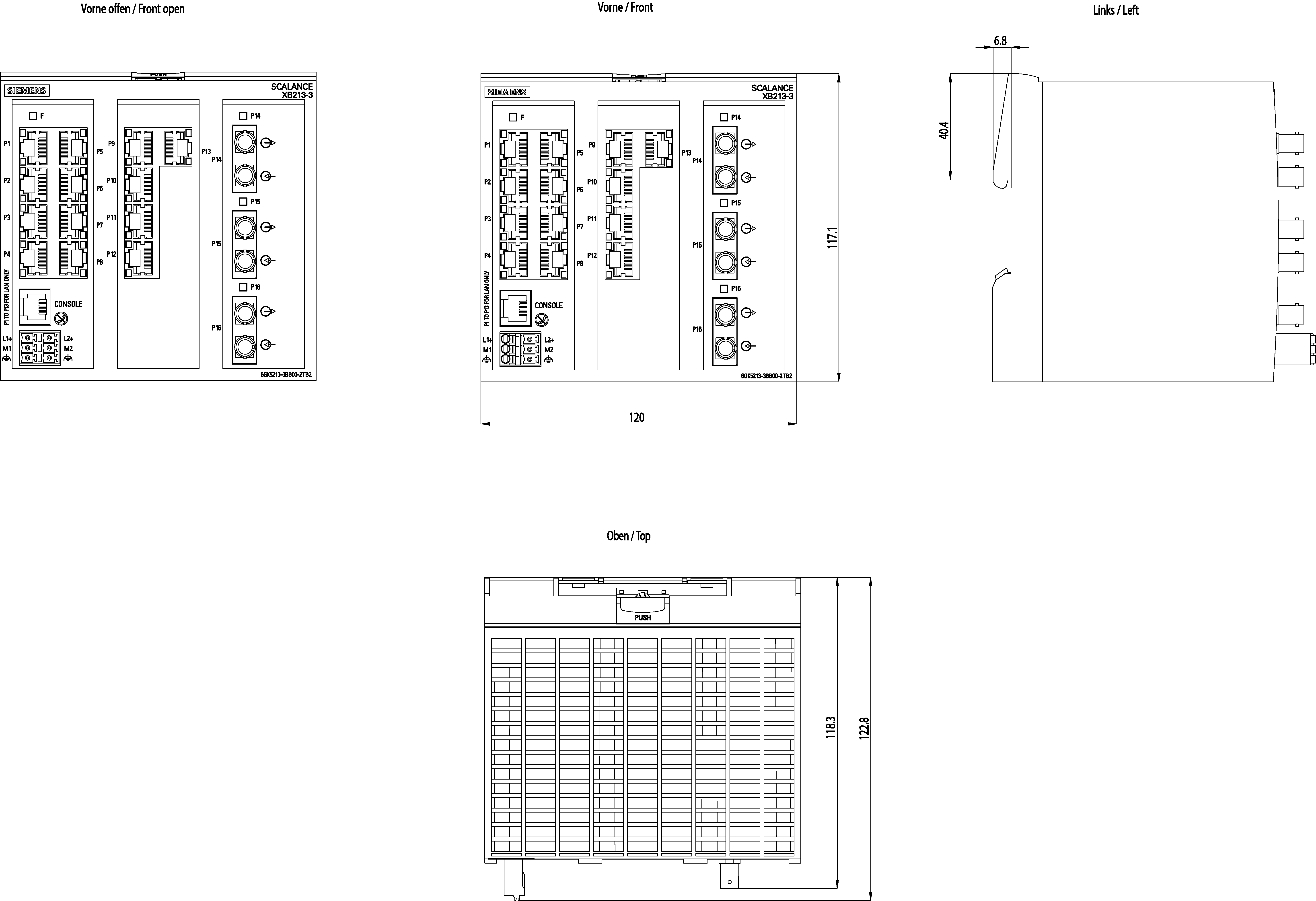 SCALANCE XB213-3 manageable Layer 2 IE Switch 13x porte RJ45 da 10/100 Mbit/s, 3x porte MM FO ST 1x porta di console, LED di diagnostica, ridondanza della alimentazione di tensione, certificato IEC 62443-4-2; campo di temp. 0°C ... +60°C; montaggio su guida profilata; EtherNet/IP predefinito. SCALANCE XB213-3 managed, box switch di Layer 2, 13x RJ45 da 10/100 Mbit/s, 3x multimode ST/BFOC per PROFINET ed EtherNet/IP, default: applicazioni EtherNet/PROFINET ed EtherNet/IP. Indicato per numerose applicazioni: Lo SCALANCE XB213-3 offre unampia varietà di switch Ethernet altamente performanti in diverse varianti: dagli switch Gigabit agli switch robusti per i requisiti dellautomazione discreta e di processo. I potenti switch Gigabit SCALANCE XB213-3 sono stati sviluppati per rispondere ai difficili requisiti delle reti negli ambienti industriali. Grazie allhardware potente e alle funzioni avanzate, assicurano uninfrastruttura di rete affidabile e scalabile per qualsiasi applicazione. Realizzazione semplice e affidabile di molte applicazioni industriali.