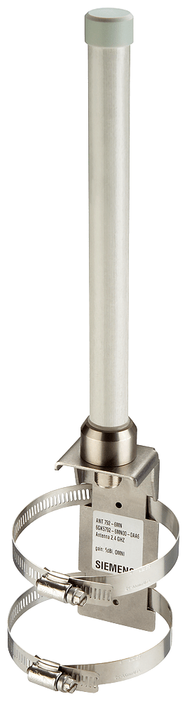 antenna ANT792-6MN IWLAN con caratteristica omnidirezionale caratteristica incl. connettore N femmina : 6 dBi IP67 (-40-+70 °C); 2,4 GHz; Wi-Fi Compliance e osservare le omologazioni nazionali; montaggio a parete o su palo, istruzioni compatte cartacee tedesco/inglese, dotazione di fornitura: 1x ANT792-6MN, 1x resistenza terminale TI795-1R . SCALANCEAntennaAntenna ANT792-6MNImpiego per Industrial Wireless LAN (IWLAN) e WLAN secondo IEEE 802.11 a 2,4 GHz e 5 GHz con data rate fino a 450 Mbit/s per lottimizzazione delle condizioni di invio e ricezione. Tramite un cavo di collegamento antenna IWLAN è possibile collegare lantenna ad Access Point o client. Esempi applicativi: � Copertura di unarea, al cui centro è disponibile un palo per il montaggio dellantenna,� Installazione dellantenna nella zona del tetto con sistemi di trasporto automatici per lo scambio dati affidabile con i veicoli, � Copertura completa dellarea di una cella di produzione o di una stazione robotizzata. Grazie alla concentrazione del campo radio attorno allantenna, si ottiene un miglioramento della qualità del collegamento. Protezione dellinvestimento grazie alla conformità allo standard IEEE 802.11 riconosciuto in tutto il mondo. Collegamento economico con apparecchiature situatein ambienti remoti, difficilmente accessibili o aggressivi.