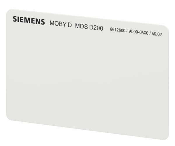 transponder MDS D200 per RF200/RF300 ISO/MOBY D, PVC ISO Card, ISO 15693, tipo di chip TI TAGIT HFI, memoria utente 256 byte; 85x 54x 0,8 mm (LxLaxA); min. quantità ordinabile: 250 pezzi. SIMATIC RFSistemi di identificazioneTransponder MDS D200Transponder MDS D200 PVC ISO Card, RF200/RF300 ISO/MOBY D, ISO 15693, 256 byte