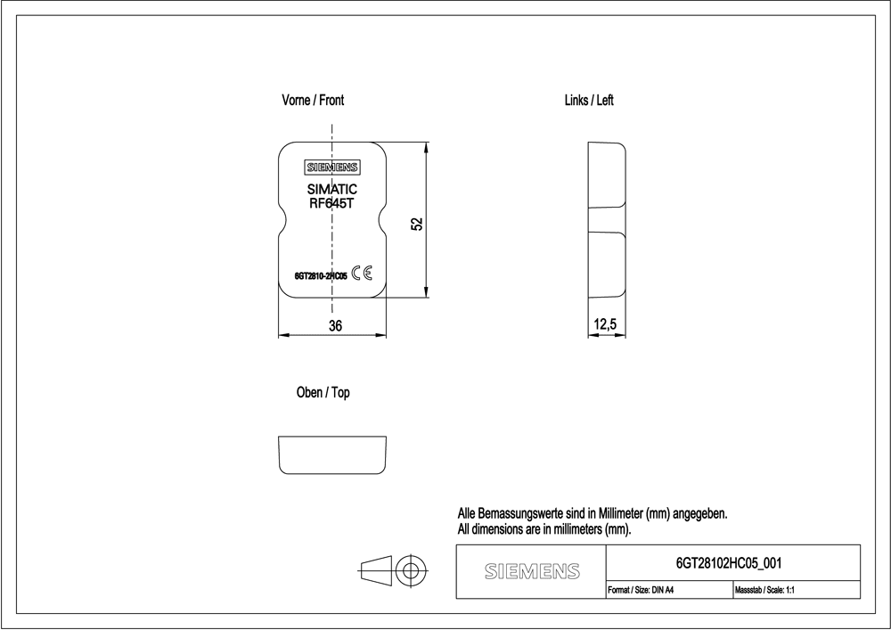 SIEMENS - SIE6GT28102HC05 SIMATIC RF645T, TRANSPONDER ON METAL