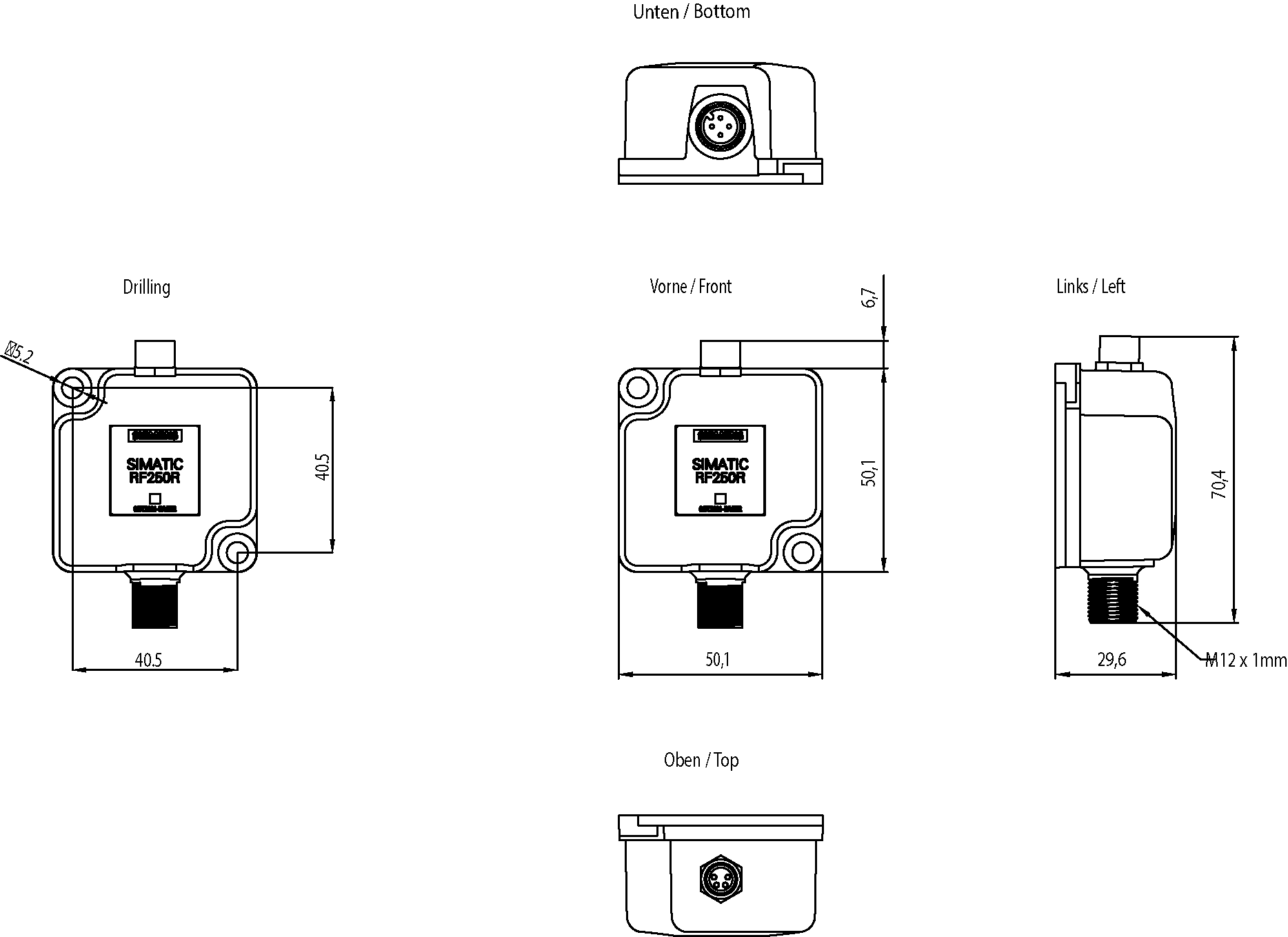 SIMATIC RF200 Reader RF250R interfaccia IO-Link IO-Link senza antenna IP65, -25 fino a +70 °C, 50x 50x 30 mm, utilizzabile con: ANT 1, 3, 3 NO, 8, 12, 18, 30; 8 byte IO; 38,4 kBit/s. SIMATIC RFSistemi di identificazioneReader RF250R IO-LinkReader HF compatto, adatto specialmente allimpiego per compiti di identificazione di utensili e in piccole linee di montaggio. Approccio entry-level alla realizzazione di applicazioni nella fascia di potenzialità da bassa a media. Tipici campi dimpiego: Tecnica di montaggio e di manipolazione, linee di montaggio (identificazione di portapezzi), linee di montaggio particolarmente piccole, logistica di produzione (comando del flusso di materiale, identificazione di container e di recipienti in genere), intralogistica, identificazione di parti (il Transponder è applicato al prodotto o al pallet), tecnica dei trasporti industriali (ad es. trasportatori aerei monorotaia elettrici).Reader compatto molto piccolo per il collegamento di una antenna esterna. - Interfaccia standardizzata IO-Link per il collegamento ai moduli di comunicazione IO-Link. - Il grado di protezione elevato e la tecnica costruttiva robusta consentono un impiego senza problemi anche in ambienti industriali particolarmente gravosi. - Semplificazione di engineering, messa in servizio, diagnostica e manutenzione grazie allintegrazione diretta in TIA. - Collegamento semplice e omogeneo tramite moduli di comunicazione.