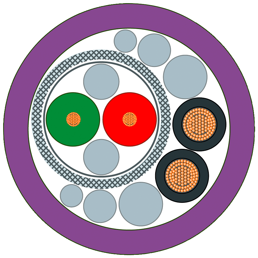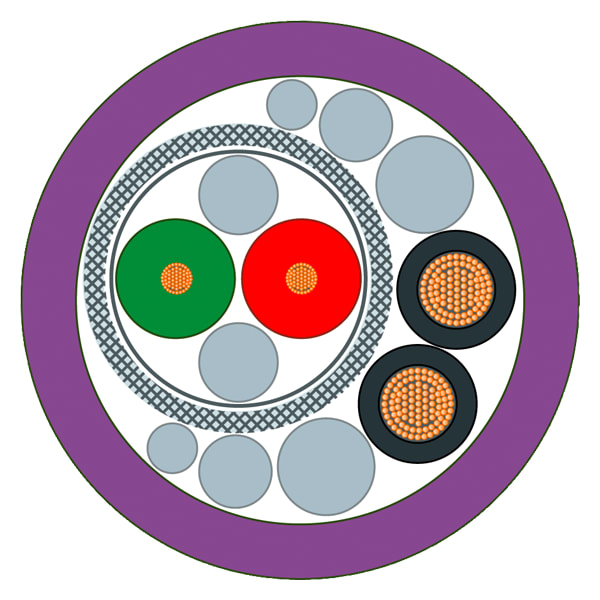 PROFIBUS Hybrid robust Cable, da trascinamento, cavo resistente a schizzi di saldatura con 2xCU (1,5 mm2) e 2xCU 0,64 mm) schermato, ET 200 fornibile a metraggio, unità di fornitura max. 1000 m, min. quantità ordinabile: 20m . SIMATIC NETCaviPROFIBUS Hybrid Robust Cable