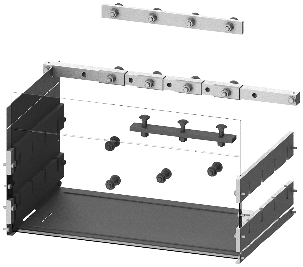 collegamento sbarre di distribuzione di scomparto 3WA grandezza costruttiva 1, installazione fissa, copertura: porta di scomparto La: 600mm Il quadro di distribuzione dellenergia SIVACON S4 è un sistema economico di involucri e componenti SENTRON. I quadri di distribuzione dellenergia SIVACON di Siemens si contraddistinguono soprattutto per le seguenti caratteristiche: 1. Il software di configurazione SIMARIS configuration aumenta la sicurezza della pianificazione e fa risparmiare tempo nella preparazione dellofferta come pure della documentazione dellimpianto. 2. Durante lesercizio un sistema di ventilazione efficiente, appositamente studiato per i componenti, impedisce surriscaldamenti e concentrazioni di calore, riduce il derating e assicura così una disponibilità costante dellimpianto. 3. La forma della segregazione interna fino a 4b può essere realizzata in modo ottimale mediante componenti standard. 4. La struttura del quadro di distribuzione dellenergia SIVACON S4 semplifica il collegamento e linstallazione degli apparecchi. 5. Grazie a portapparecchi regolabili in profondità si hanno moltissime possibilità di installazione con una ridotta varietà di componenti, vedi ad. es. la scelta del meccanismo di comando e il tipo di montaggio degli apparecchi di manovra. 6. Grazie al concetto di produzione flessibile dei quadri di distribuzione SIVACON S4 certificato secondo ISO 9001 si possono realizzare soluzioni premontate in diverse varianti costruttive (secondo necessità con o senza elementi strutturali in rame) fornibili in tempo assai breve.