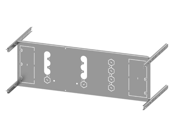 piastra di montaggio 3VA13 (400A), 3VA14 (630A), 3VA23 (400A), 3VA24 (630A), a 3 o 4 poli, installazione fissa, RCD: con; A: 250 mm, La: 800mm Il quadro di distribuzione dellenergia SIVACON S4 è un sistema economico di involucri e componenti SENTRON. I quadri di distribuzione dellenergia SIVACON di Siemens si contraddistinguono soprattutto per le seguenti caratteristiche: 1. Il software di configurazione SIMARIS configuration aumenta la sicurezza della pianificazione e fa risparmiare tempo sia nella preparazione dellofferta sia nella documentazione dellimpianto. 2. Durante lesercizio un sistema di ventilazione efficiente, appositamente studiato per i componenti, impedisce surriscaldamenti e concentrazioni di calore, riduce il derating e assicura così unadisponibilità costante dellimpianto. 3. La forma della segregazione interna fino a 4b può essere realizzata in modo ottimale mediante componenti standard. 4. La struttura del quadro di distribuzione dellenergia SIVACON S4 semplifica il collegamento e linstallazione degli apparecchi. 5. Grazie a portapparecchi regolabili in profondità si hanno moltissime possibilità di installazione con unaridotta varietà di componenti, vedi ad. es. la scelta del meccanismo di comando e il tipo di montaggio degli apparecchi di manovra. 6. Grazie al concetto di produzione flessibile dei quadri di distribuzione SIVACON S4 certificato secondo ISO 9001 si possono realizzare soluzioni premontate in diverse varianti costruttive (secondo necessità con o senza elementi strutturali in rame) fornibili in tempo di consegna assai breve.
