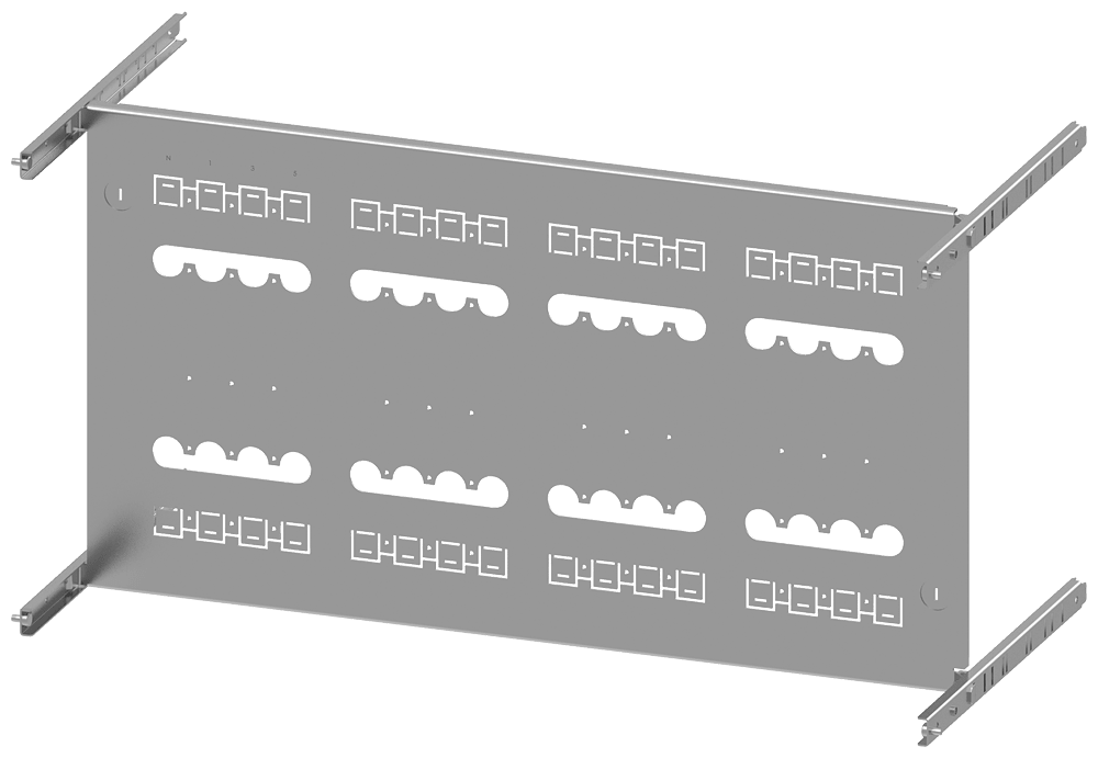 piastra di montaggio 3VA20 (100A), 3VA21 (160A), 3VA22 (250A), a 4 poli, installazione fissa, RCD: con; A: 450mm, La: 800mm Il quadro di distribuzione dellenergia SIVACON S4 è un sistema economico di involucri e componenti SENTRON. I quadri di distribuzione dellenergia SIVACON di Siemens si contraddistinguono soprattutto per le seguenti caratteristiche: 1. Il software di configurazione SIMARIS configuration aumenta la sicurezza della pianificazione e fa risparmiare tempo sia nella preparazione dellofferta sia nella documentazione dellimpianto. 2. Durante lesercizio un sistema di ventilazione efficiente, appositamente studiato per i componenti, impedisce surriscaldamenti e concentrazioni di calore, riduce il derating e assicura così una disponibilità costante dellimpianto. 3. La forma della segregazione interna fino a 4b può essere realizzata in modo ottimale mediante componenti standard. 4. La struttura del quadro di distribuzione dellenergia SIVACON S4 semplifica il collegamento e linstallazione degli apparecchi. 5. Grazie a portapparecchi regolabili in profondità si hanno moltissime possibilità di installazione con unaridotta varietà di componenti, vedi ad. es. la scelta del meccanismo di comando e il tipo di montaggio degli apparecchi di manovra. 6. Grazie al concetto di produzione flessibile dei quadri di distribuzione SIVACON S4 certificato secondo ISO 9001 si possono realizzare soluzioni premontate in diverse varianti costruttive (secondo necessità con o senza elementi strutturali in rame) fornibili in tempo di consegna assai breve.