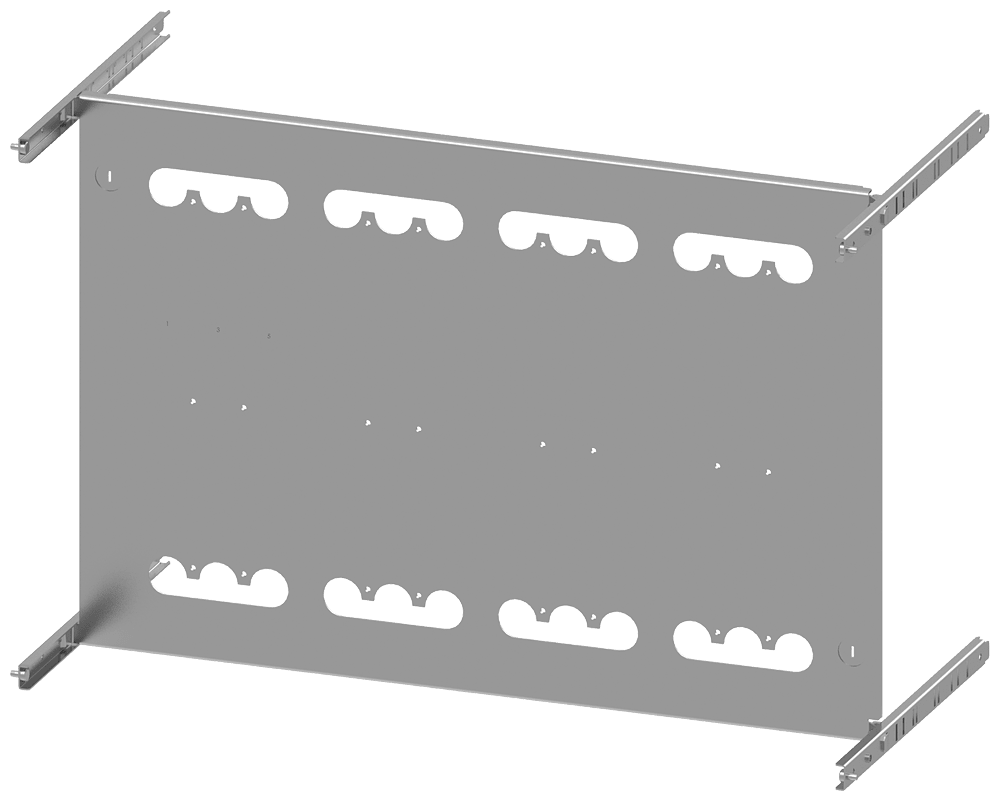 piastra di montaggio 3VA23 (400A), 3VA24 (630A), a 3 poli, installazione fissa, RCD: con; A: 600mm, La: 800mm Il quadro di distribuzione dellenergia SIVACON S4 è un sistema economico di involucri e componenti SENTRON. I quadri di distribuzione dellenergia SIVACON di Siemens si contraddistinguono soprattutto per le seguenti caratteristiche: 1. Il software di configurazione SIMARIS configuration aumenta la sicurezza della pianificazione e fa risparmiare tempo sia nella preparazione dellofferta sia nella documentazione dellimpianto. 2. Durante lesercizio un sistema di ventilazione efficiente, appositamente studiato per i componenti, impedisce surriscaldamenti e concentrazioni di calore, riduce il derating e assicura così una disponibilità costante dellimpianto. 3. La forma della segregazione interna fino a 4b può essere realizzata in modo ottimale mediante componenti standard. 4. La struttura del quadro di distribuzione dellenergia SIVACON S4 semplifica il collegamento e linstallazione degli apparecchi. 5. Grazie a portapparecchi regolabili in profondità si hanno moltissime possibilità di installazione con unaridotta varietà di componenti, vedi ad. es. la scelta del meccanismo di comando e il tipo di montaggio degli apparecchi di manovra. 6. Grazie al concetto di produzione flessibile dei quadri di distribuzione SIVACON S4 certificato secondo ISO 9001 si possono realizzare soluzioni premontate in diverse varianti costruttive (secondo necessità con o senza elementi strutturali in rame) fornibili in tempo di consegna assai breve.