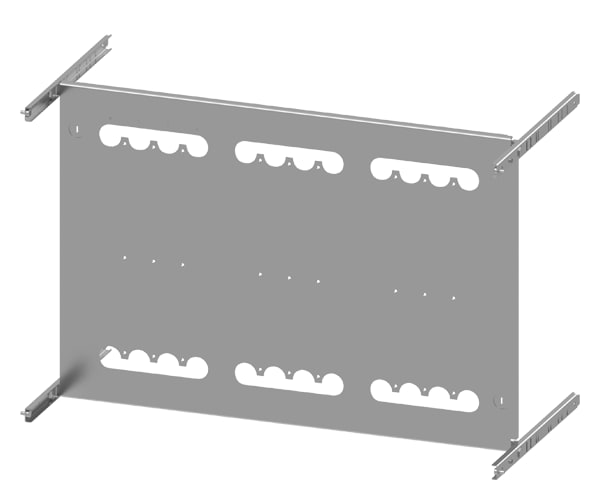 piastra di montaggio 3VA23 (400A), 3VA24 (630A), a 4 poli, installazione fissa, RCD: con; A: 600mm, La: 800mm Il quadro di distribuzione dellenergia SIVACON S4 è un sistema economico di involucri e componenti SENTRON. I quadri di distribuzione dellenergia SIVACON di Siemens si contraddistinguono soprattutto per le seguenti caratteristiche: 1. Il software di configurazione SIMARIS configuration aumenta la sicurezza della pianificazione e fa risparmiare tempo sia nella preparazione dellofferta sia nella documentazione dellimpianto. 2. Durante lesercizio un sistema di ventilazione efficiente, appositamente studiato per i componenti, impedisce surriscaldamenti e concentrazioni di calore, riduce il derating e assicura così una disponibilità costante dellimpianto. 3. La forma della segregazione interna fino a 4b può essere realizzata in modo ottimale mediante componenti standard. 4. La struttura del quadro di distribuzione dellenergia SIVACON S4 semplifica il collegamento e linstallazione degli apparecchi. 5. Grazie a portapparecchi regolabili in profondità si hanno moltissime possibilità di installazione con unaridotta varietà di componenti, vedi ad. es. la scelta del meccanismo di comando e il tipo di montaggio degli apparecchi di manovra. 6. Grazie al concetto di produzione flessibile dei quadri di distribuzione SIVACON S4 certificato secondo ISO 9001 si possono realizzare soluzioni premontate in diverse varianti costruttive (secondo necessità con o senza elementi strutturali in rame) fornibili in tempo di consegna assai breve.