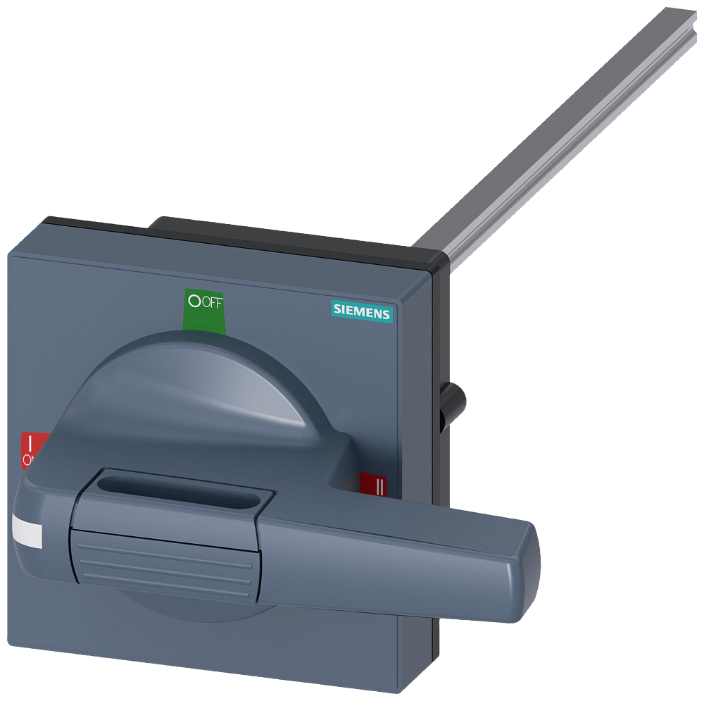 comando rotativo bloccoporta standard con compensazione della tolleranza dimensioni 100 x 100, albero 8 x 8, 300mm, I-0-II, apparecchio completo operatore grandezza 100mm accessori per 3KC0 grand. costr. 3 Comandi manuali per un comodo utilizzo dellinterruttore automatico scatolato 3VA. Disponibilità come comando rotativo frontale, per porta e parete laterale con diverse possibilità di chiusura a chiave e con interblocco Le manopole sono disponibili nelle varianti standard e ARRESTO DI EMERGENZA, ciascuna con o senza kit di illuminazione. Interruttori automatici scatolati SENTRON 3VA - Un sistema. Per tutte le applicazioni.