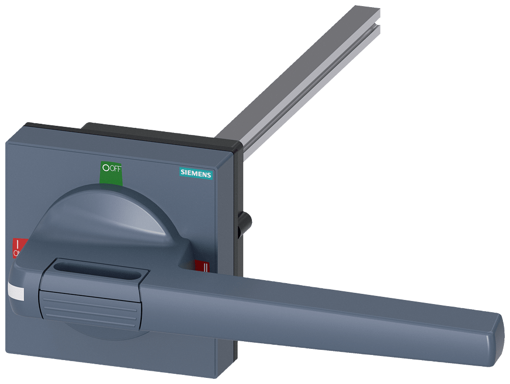 comando rotativo bloccoporta standard con compensazione della tolleranza dimensioni 100 x 100, albero 12 x 12, 300mm, I-0-II, apparecchio completo operatore grandezza 200mm accessori per 3KC0 grand. costr. 5 Comandi manuali per un comodo utilizzo dellinterruttore automatico scatolato 3VA. Disponibilità come comando rotativo frontale, per porta e parete laterale con diverse possibilità di chiusura a chiave e con interblocco Le manopole sono disponibili nelle varianti standard e ARRESTO DI EMERGENZA, ciascuna con o senza kit di illuminazione. Interruttori automatici scatolati SENTRON 3VA - Un sistema. Per tutte le applicazioni.