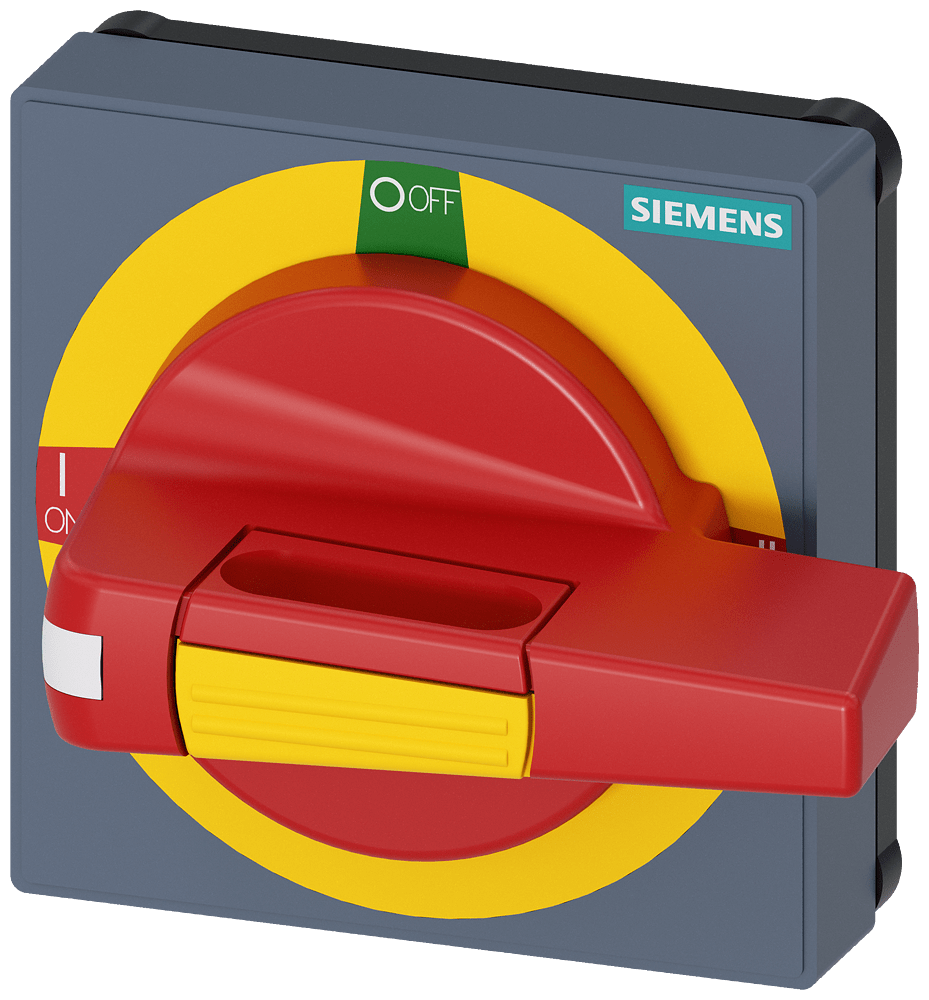 manopola con mostrina frontale emergenza dimensioni 75 x 75, per albero 8x 8, I-0-II, operatore grandezza 55mm accessori per 3KC0 grand. costr. 1 e 2 Comandi manuali per un comodo utilizzo dellinterruttore automatico scatolato 3VA. Disponibilità come comando rotativo frontale, per porta e parete laterale con diverse possibilità di chiusura a chiave e con interblocco Le manopole sono disponibili nelle varianti standard e ARRESTO DI EMERGENZA, ciascuna con o senza kit di illuminazione. Interruttori automatici scatolati SENTRON 3VA - Un sistema. Per tutte le applicazioni.
