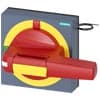 manopola con mostrina frontale emergenza con illuminazione dimensioni 100 x 100, per albero 8x 8, Test-0-I, operatore grandezza 100mm accessori per 3KD grand. costr. 3, 3KF grand. costr. 2 e 3 Comandi manuali per un comodo utilizzo dellinterruttore automatico scatolato 3VA. Disponibilità come comando rotativo frontale, per porta e parete laterale con diverse possibilità di chiusura a chiave e con interblocco Le manopole sono disponibili nelle varianti standard e ARRESTO DI EMERGENZA, ciascuna con o senzakit di illuminazione. Interruttori automatici scatolati SENTRON 3VA - Un sistema. Per tutte le applicazioni.