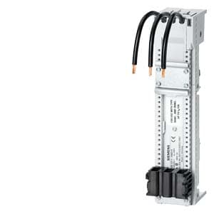 sistema di sbarre collettrici interdistanza tra le sbarre 60mm adattatore per apparecchio, larghezza: 45mm spessore delle sbarre: 5,10mm+profilo TT con 1 profilato di supporto 35mm per partenza compatta 3RA6 lunghezza 200mm Ue690V, Ie fino a 32A, attenzione: se la corrente nominale >12A e la corrente di cortocircuito > 25kA osservare la sezione del conduttore max. 6mm2 e la lunghezza conduttore min. di 2m Adattatore apparecchio SENTRON 8US1 per sistemi di sbarre collettrici per il montaggio di dispositivi di protezione. I sistemi di sbarre collettrici 8US Siemens offrono molteplici possibilità per linstallazione di apparecchi di collegamento, manovra e installazione adattabili a sbarre. La struttura modulare, così come il fissaggio meccanico e la contattazione elettrica in una sola operazione sono vantaggiosi. Grazie alla copertura di protezione a prova di dito degli adattatori e dei portapparecchi è garantita unelevata sicurezza di funzionamento. Sono dotati di una omologazione internazionale e consentono possibilità di impiego in tutto il mondo nel settore della costruzione di macchine e impianti. Il sistema di sbarre collettrici 8US1 è disponibile con interassi delle sbarre collettrici diversi. Sistemi di sbarre collettrici SENTRON - sicuri, poco ingombranti, organizzati in modo chiaro.