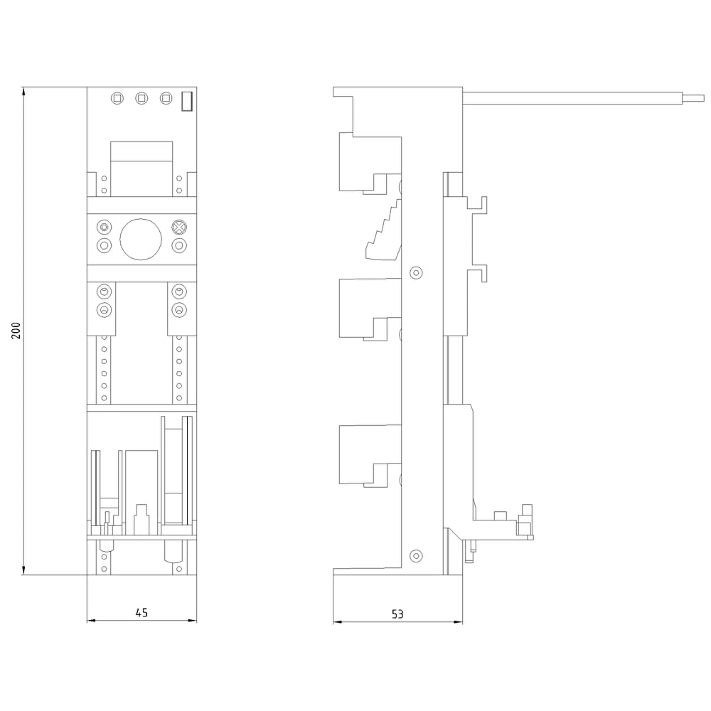 adattatore apparecchio S00, S0, 32A, AWG10, cavi 150°, 45x 200mm Adattatore apparecchio SENTRON 8US1 per sistemi di sbarre collettrici per il montaggio di dispositivi di protezione. I sistemi di sbarre collettrici 8US Siemens offrono molteplici possibilità per linstallazione di apparecchi di collegamento, manovra e installazione adattabili a sbarre. La struttura modulare, così come il fissaggio meccanico e la contattazione elettrica in una sola operazione sono vantaggiosi. Grazie alla copertura di protezione a prova di dito degli adattatori e dei portapparecchi è garantita unelevata sicurezza di funzionamento. Sono dotati di una omologazione internazionale e consentono possibilità di impiego in tutto il mondo nel settore della costruzione di macchine e impianti. Il sistema di sbarre collettrici 8US1 è disponibile con interassi delle sbarre collettrici diversi. Sistemi di sbarre collettrici SENTRON - sicuri, poco ingombranti, organizzati in modo chiaro.