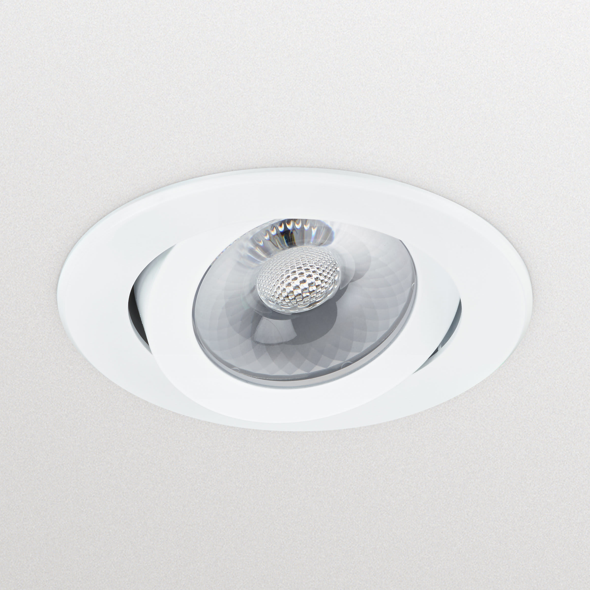 CoreLine Recessed Spot gen2, Adjustable, D78 mm, Alluminio pressofuso, Bianco, Unità di alimentazione con regolazione esterna, 1200 lm, 12.3 W, 98 lm/W, 3000 K, (0.43, 0.40) SDCM 5, Fascio largo, Policarbonato, IP20/44 | Protetto contro l'accesso con un dito; protetto contro l'accesso con un filo, a prova di schizzi, IK03 | 0,3 J, Classe di isolamento II, Cavo 0,25 m con connettore 3 poli, Connettore a pressione 3 poli