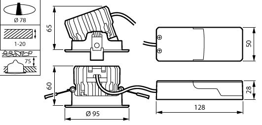Adjustable, D78 mm, Alluminio pressofuso, Bianco, Unita di alimentazione con regolazione esterna, 1320 lm, 12.3 W, 107 lm/W, 4000 K, (0.38, 0.38) SDCM 5, Fascio largo, Policarbonato, Protetto contro l'accesso con un dito; protetto contro l'accesso con unfilo, protetto contro gli schizzi d'acqua, 0,3 J, Classe di isolamento II, Connettore a pressione 3 poli