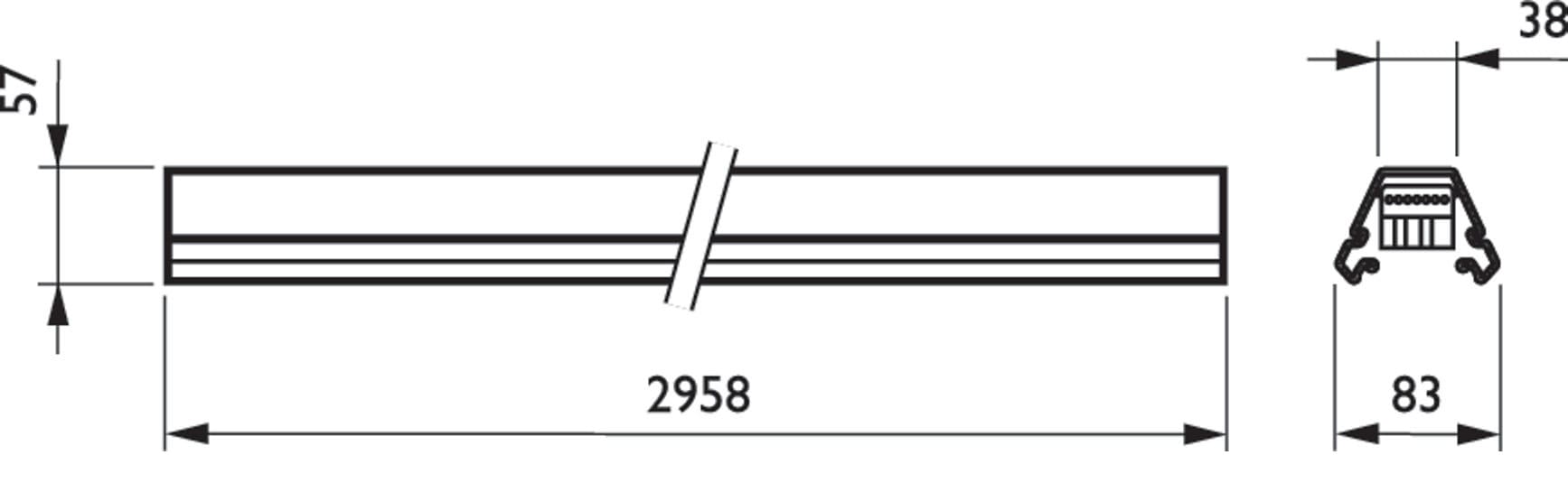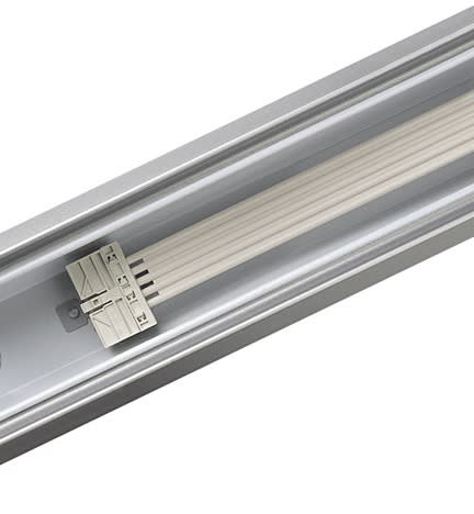 La canalina assolve a una duplice funzione: da un lato offre un robusto binario per il montaggio in fila continua delle unità elettriche, dall'altro provvede alla distribuzione dell'alimentazione elettrica mediante cavi elettrici. Tutte le sezioni di canalina sono realizzate in acciaio zincato a caldo con rivestimento in colore bianco o argento. Sono disponibili in versioni dedicate per lampade TL5, dotate di 1, 2 o 3 unità elettriche da 49 W (35 W/80 W) e 54 W (28 W).Nella canalina sono integrati un cavo piatto (a 5 o 7 conduttori) o due cavi piatti (2 x 5 o 2 x 7 conduttori) che garantiscono (unitamente a un selettore di fase integrato e alle morsettiere) un cablaggio corretto e sicuro. Il cavo a 7 poli consente di integrare sistemi di regolazione dell'intensità luminosa o di illuminazione di emergenza per le unità elettriche dotate di batteria per il funzionamento in emergenza. Il doppio cablaggio (2x5 o 2x7 conduttori) consente di offrire un'alimentazione completamente separata per le unità elettriche. Il doppio cablaggio viene utilizzato prevalentemente per l'illuminazione di emergenza con apposite batterie centralizzate o con attivazione separata. Pertanto, non occorre installare ulteriori morsettiere.Per i sistemi a canalina a sospensione, le sezioni di canalina sono collegate tra loro mediante il connettore elettrico integrato e un robusto giunto meccanico esterno (accessorio). I sistemi a canalina montati a plafone utilizzano lo stesso connettore elettrico integrato e un giunto interno (accessorio). Sulla parte superiore della sezione di canalina sono presenti apposite aperture a sfondare che consentono l'ingresso di cavi.La canalina è disponibile con una gamma completa di componenti intercambiabili che ottimizzano ulteriormente la flessibilità del sistema. La straordinaria stabilità delle sezioni e degli elementi di raccordo consente di mantenere interassi di sospensione compresi fra 3,4 e 5 m.Gli accessori per canaline Maxos TL-D sono adatti anche per le canaline TL5.