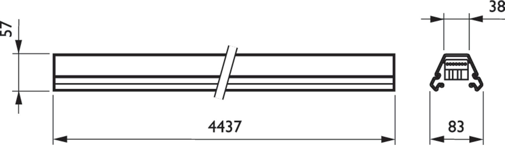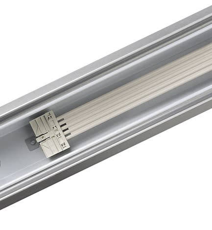 La canalina assolve a una duplice funzione: da un lato offre un robusto binario per il montaggio in fila continua delle unità elettriche, dall'altro provvede alla distribuzione dell'alimentazione elettrica mediante cavi elettrici. Tutte le sezioni di canalina sono realizzate in acciaio zincato a caldo con rivestimento in colore bianco o argento. Sono disponibili in versioni dedicate per lampade TL5, dotate di 1, 2 o 3 unità elettriche da 49 W (35 W/80 W) e 54 W (28 W).Nella canalina sono integrati un cavo piatto (a 5 o 7 conduttori) o due cavi piatti (2 x 5 o 2 x 7 conduttori) che garantiscono (unitamente a un selettore di fase integrato e alle morsettiere) un cablaggio corretto e sicuro. Il cavo a 7 poli consente di integrare sistemi di regolazione dell'intensità luminosa o di illuminazione di emergenza per le unità elettriche dotate di batteria per il funzionamento in emergenza. Il doppio cablaggio (2x5 o 2x7 conduttori) consente di offrire un'alimentazione completamente separata per le unità elettriche. Il doppio cablaggio viene utilizzato prevalentemente per l'illuminazione di emergenza con apposite batterie centralizzate o con attivazione separata. Pertanto, non occorre installare ulteriori morsettiere.Per i sistemi a canalina a sospensione, le sezioni di canalina sono collegate tra loro mediante il connettore elettrico integrato e un robusto giunto meccanico esterno (accessorio). I sistemi a canalina montati a plafone utilizzano lo stesso connettore elettrico integrato e un giunto interno (accessorio). Sulla parte superiore della sezione di canalina sono presenti apposite aperture a sfondare che consentono l'ingresso di cavi.La canalina è disponibile con una gamma completa di componenti intercambiabili che ottimizzano ulteriormente la flessibilità del sistema. La straordinaria stabilità delle sezioni e degli elementi di raccordo consente di mantenere interassi di sospensione compresi fra 3,4 e 5 m.Gli accessori per canaline Maxos TL-D sono adatti anche per le canaline TL5.