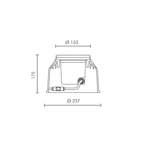 Cassaforma per MINIFLAT Ø153mm. Fornito con cassaforma in polipropilene predisposta per l'entrata dei cavi che permette di: 1) eseguire un facile cablaggio; 2) alloggiare il connettore rapido; 3) eseguire facilmente la rimozione dell'apparecchio per la manutenzione. Foro da incasso: 237x175mm.