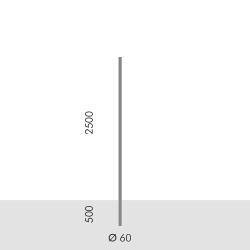 PALO CILINDRICO Ø 60 mm DA INTERRARE. Altezza totale del palo 3000 mm. Da interrare per una profondità di 500 mm. Altezza totale fuori terra prodotto finito 3065 mm. Colore: Grigio alluminio (cod. 14).