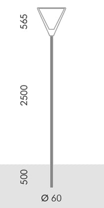 PALO CILINDRICO Ø 60 mm DA INTERRARE. Altezza totale del palo 3000 mm. Da interrare per una profondità di 500 mm. Altezza totale fuori terra prodotto finito 3065 mm. Colore: Grigio antracite (cod. 24).