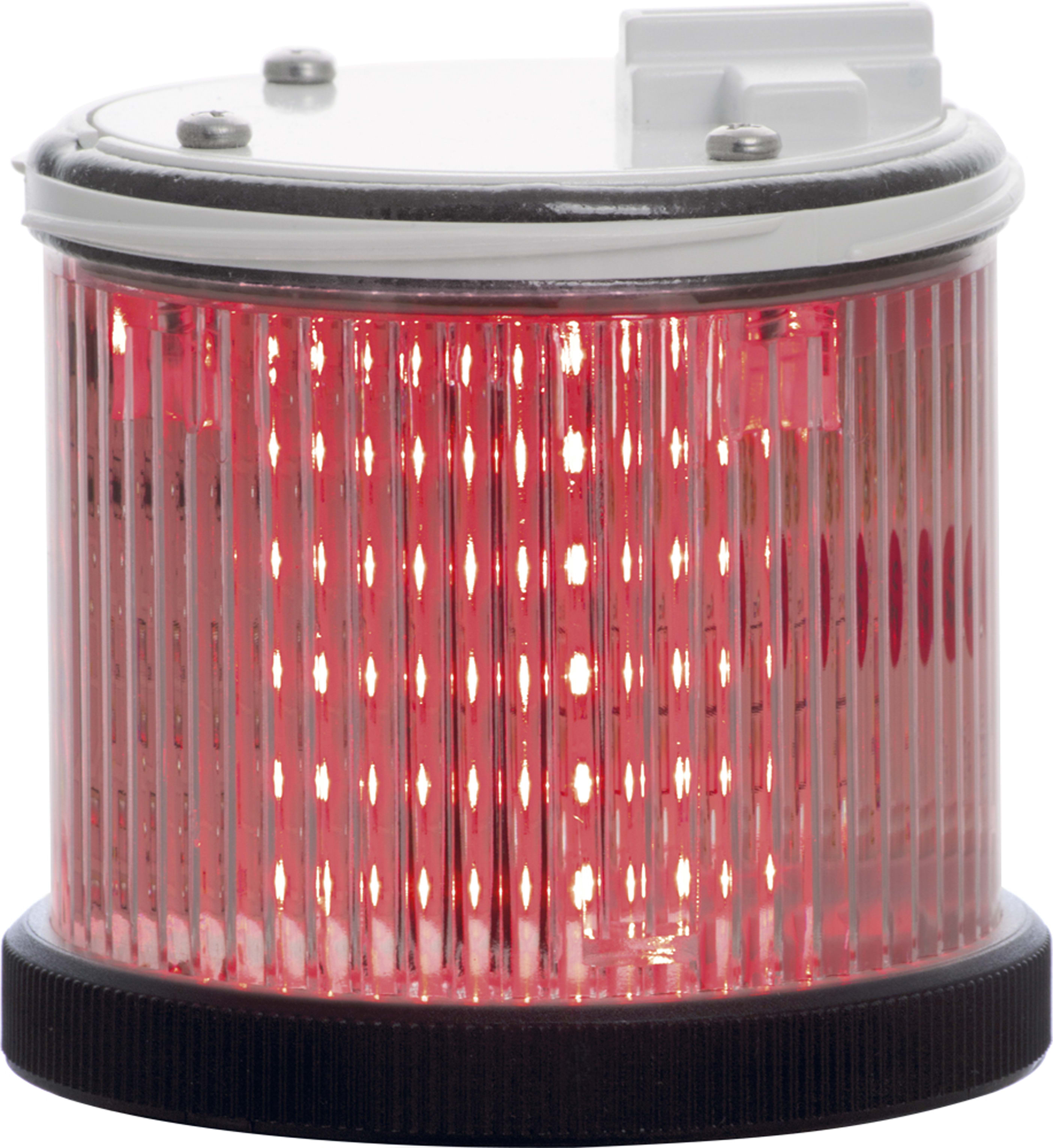 Modulo luminoso a LED integrato. Versione STEADY (luce fissa), TWS LED offre la massima versatilità oltre che performance ottiche eccellenti e una manutenzione teoricamente nulla grazie alla tecnologia LED che garantisce 100.000 ore di utilizzo. Policarbonato autoestinguente ad alta resistenza agli impatti, adatto per utilizzo esterno grazie al grado di protezione IP66/TYPE 4X garantito dalla doppia guarnizione in poliuretano presente su ogni modulo. Lente con rigatura verticale per una perfetta distribuzione della luce a 360°. Lente neutra con fonte luminosa colorata. In ambienti con luminosità molto alta è possibile che la luminosità ambientale stessa illumini il modulo spento creando problemi nella distinzione tra lo stato ON e OFF della colonna (effetto phantom). Il modulo con colorazione neutra permette una netta distinzione tra lo status ON e OFF della colonna.