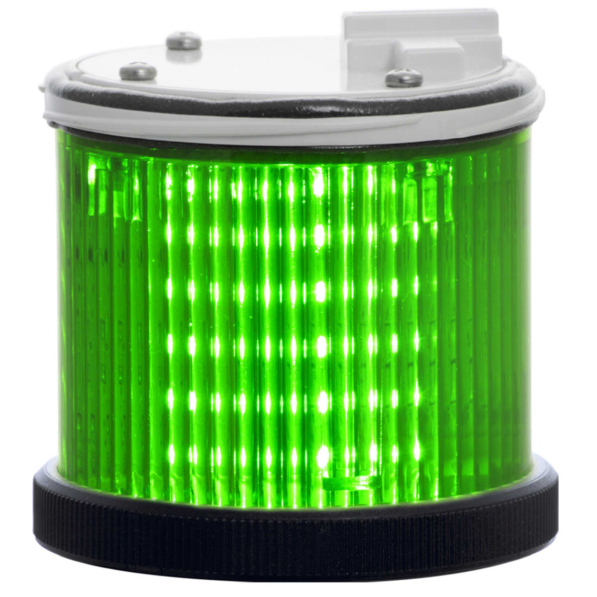 Modulo luminoso 240V AC di colore verde a LED integrato con lente ALLCOLOR. Possibilit? di gestire diversi effetti luminosi grazie a dip-switch integrato. Ghiera di colore nero.