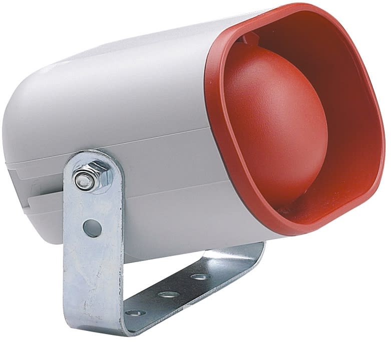Sirena elettronica con corpo e diffusore sonoro direzionale in ABS, staffa di montaggio in lamiera zincata. Autoestinguente. Multisuono a 32 tonalità (lineare, modulato, bitonale, pluritonale)