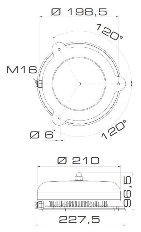 Campana elettromeccanica con base rinforzata diametro 215mm. Sviluppata con unità elettromagnetica a pistone battente, genera un caratteristico suono continuo. La robusta struttura in acciaio della campana conferisce un’elevata resistenza agli impatti e fornisce un‘alta protezione contro l’ingresso di polveri ed acqua (IP66), rendendola idonea anche per utilizzo gravoso. Campana in acciaio e flangia in poliammide. Dotata di base piana, il fissaggio avviene con viteria standard non fornita.
