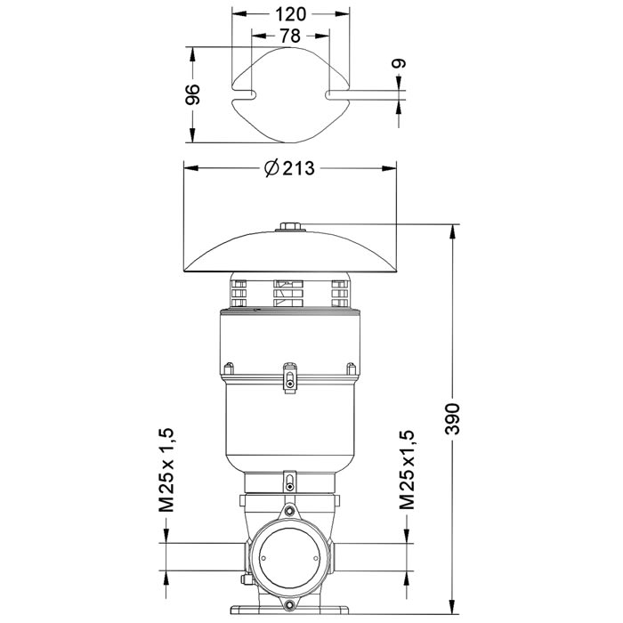 Sirene elettromeccaniche antideflagranti di dimensione maggiore rispetto alla gamma MINICELERE, progettate e costruite per tutte quelle applicazioni dove è necessario un maggiore livello di suono. I dispositivi della gamma SUPERCELERE sono una combinazione unica di precisione e tecnologia uniti a 30 anni di esperienza che Sirena ha maturato nel settore delle sirene elettromeccaniche. Sirene elettromeccaniche antideflagranti per impiego in aree del Gruppo II con atmosfera esplosiva per zona 1, 2, 21 e 22.II 2GD Ex d e IIC T6 Ex tD A21 IP66 T85 °C . Omologazione: CESI 10 ATEX 038 X . Corpo in lega di alluminio esente da rame. Verniciatura poliestere RAL 3020. Intensità del suono: max. 107 dB(A)1m. Protezione: IP 66. Temperatura massima superficiale: T6