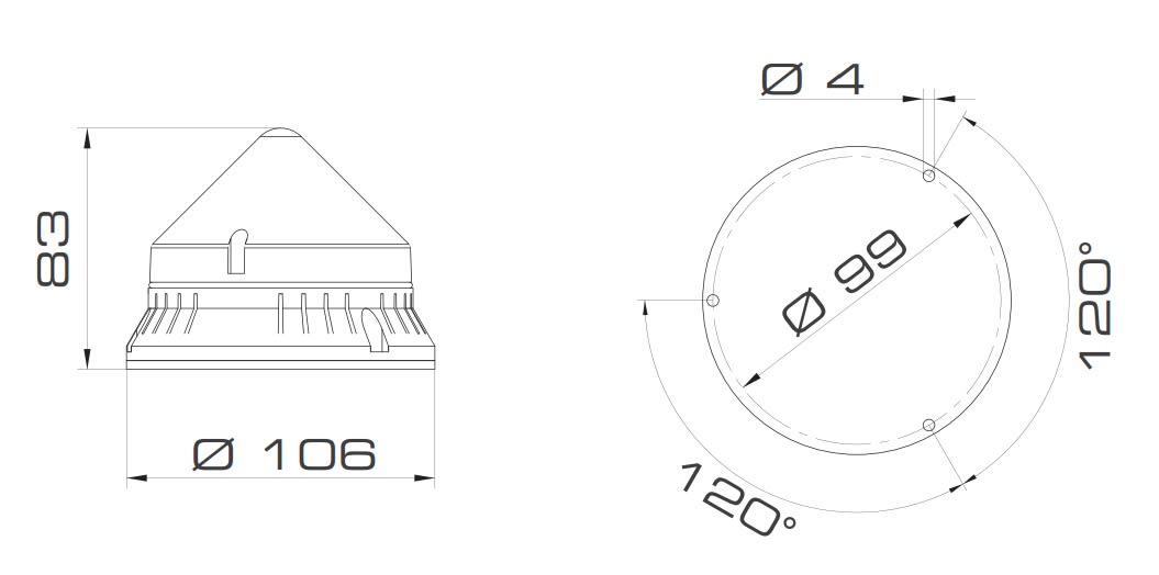 Dispositivo luminoso per applicazioni industriali a bordo macchina con diametro 90mm, versione a flash con lampada a scarica di Xenon (fornita). Base in ABS, cupola in policarbonato. Fissaggio tramite viteria standard non fornita. Lampada a scarica di Xenon: potente flash singolo (1F) da 1J