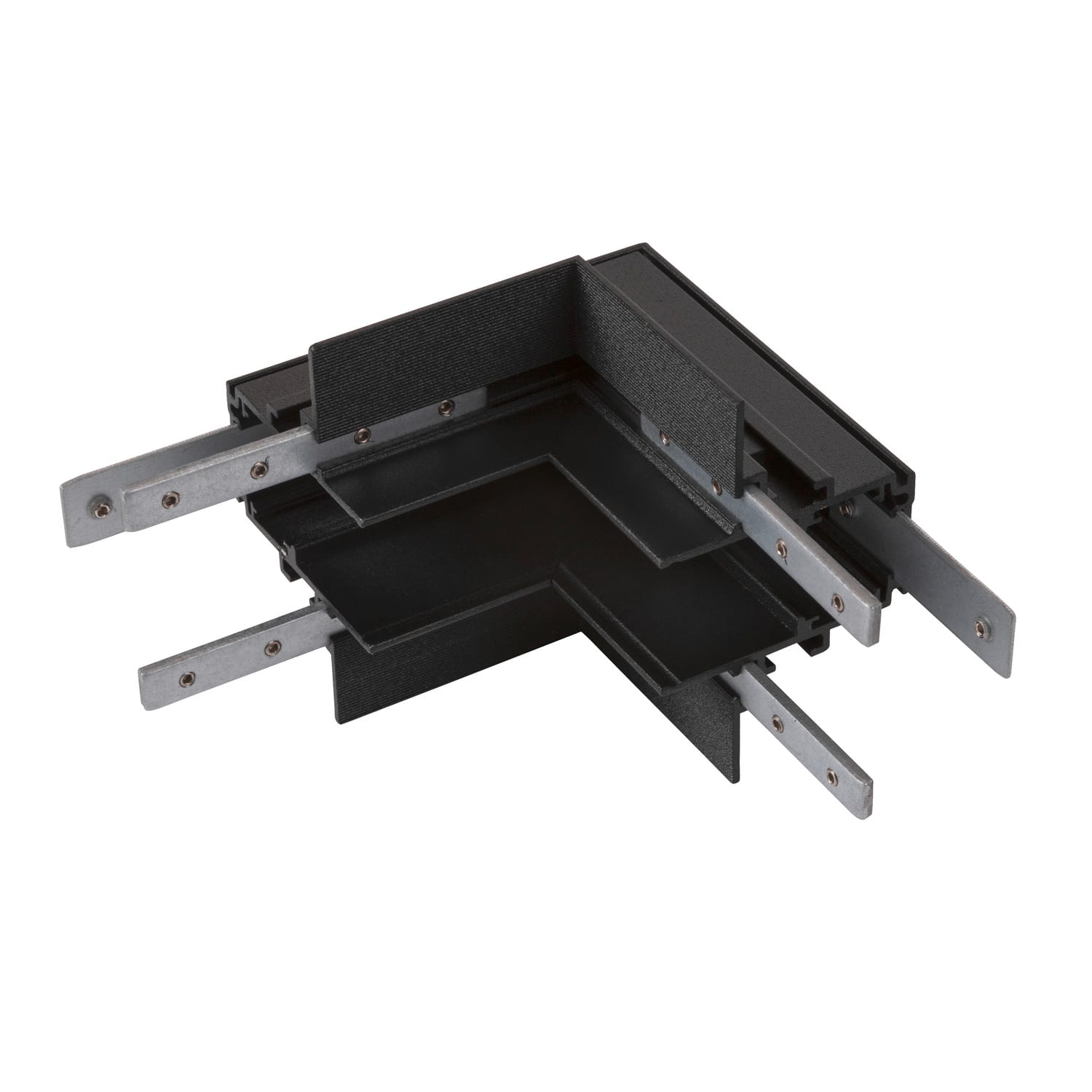 Il raccordo meccanico a L collega due binari a parete/plafone da 48V ad angolo. Inoltre, si integra in maniera perfetta nel pregiato concept di design. È disponibile a scelta in nero o bianco, per essere abbinato al sistema di binari.