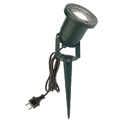 Faretto orientabile in pressofusione di alluminio. Con staffa per fissaggio e picchetto. Diffusore in vetro trasparente. Altezza massima lampada: 57mm. Porta lampada GU10. Cavo di alimentazione H05RN-F3G1 da 2 metri con spina schuko. Pressacavo PG7. Alimentazione 230 V ~ 50 Hz. Classe di protezione: IP44 Potenza massima lampade: 50W