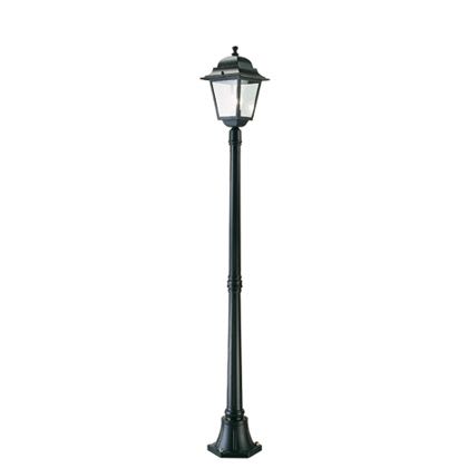 Palo in pressofusione di alluminio. Diffusori in vetro trasparente. Altezza max lampada: 210mm. Triangolo di fissaggio a terra. Alimentazione 230 V ~ 50 Hz. Classe di protezione: IP43 Potenza massima lampade: 100W