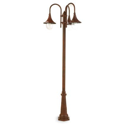 Struttura in pressofusione di alluminio. Diffusori in termoplastico trasparente. Dima per fissaggio a terra, dispositivo di connessione e accessori per il fissaggio. Portalampada in porcellana con attacco E27. Altezza lampada: max 150mm. Lampada esclusa.Alimentazione 230V ~ 50Hz. Classe di protezione: IP43 Numero lampade: 3 Potenza massima lampade: 60W