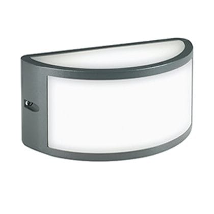 Applique in alluminio pressofuso. Diffusore in termoplastico opalino. Modulo LED sostituibile con sistema EASY CHANGE che consente la sostituzione senza necessità di disinstallare la lampada dalla parete. Consumo: 10W. Flusso luminoso nominale: 950 lumen. Flusso luminoso reale: 840 lumen. Classe di efficienza energetica: F Temperatura di colore: 3000°K. Luce calda. Illuminazione con 15 LED SMD 2835. Alimentazione: 230V. Classe di protezione: IP54 Potenza massima lampade: 10W