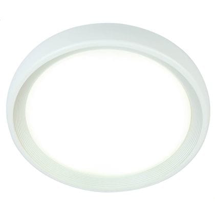 Plafoniera in termoplastico. Diffusore in termoplastico opalino. Consumo 18W. Flusso luminoso nominale: 2150 lumen. Flusso luminoso reale: 1800 lumen. Classe di efficienza energetica: E Temperatura di colore: 4000°K. Luce naturale. Illuminazione con 82 LED SMD 2835. Alimentazione 230V. Classe di protezione: IP65 Potenza massima lampade: 18W