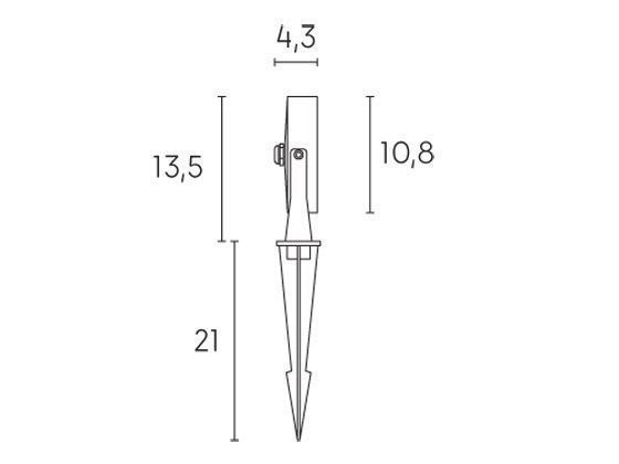 Faretto orientabile in alluminio pressofuso. Con picchetto di supporto incluso. Diffusore in vetro trasparente. Consumo: 15W. Flusso luminoso nominale: 1100 lumen. Flusso luminoso reale: 920 lumen. Classe di efficienza energetica: G Temperatura di colore: 4000°K. Luce naturale. Illuminazione con 18 LED SMD 2835. Cavo di alimentazione H05RN-F. Pressacavo PG7. Alimentazione: 230V. Classe di protezione: IP65 Potenza massima lampade: 15W