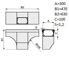 Larghezza del canale in direzione orizzontale - 300 mm