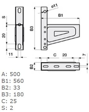 STEEL LINE CMS: MSU500S MEN. CON SPALLINA UNICA B500, Mensola per sistema portacavi