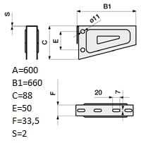 Adatto per larghezza sistema di supporto cavi - 600...600 mm