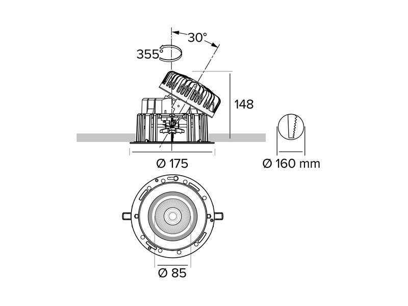 Adatto per montaggio a soffitto: