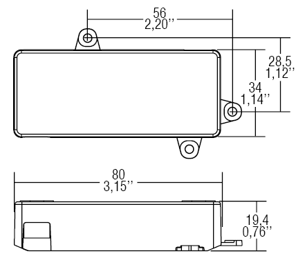 Alimentatore da incorporare. Utilizzabile per apparecchi di illuminazione in classe di protezione I e II. Morsetti di entrata e uscita contrapposti (sezione cavo fino a 2,5 mm2 / AWG13). Singola morsettiera su primario e secondario. Fissaggio dell’alimentatore tramite asole per viti. Protezioni: termica e cortocircuito; contro le extra-tensioni di rete; contro i sovraccarichi.