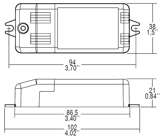 Alimentatore indipendente IP20, per uso interno (MICRO MD). Protetto in classe II contro le scosse elettriche per contatti diretti e indiretti. Alimentatore da incorporare (MICRO MD BI). Utilizzabile per apparecchi di illuminazione in classe di protezione I e II (MICRO MD BI). PFC attivo. Corrente regolata ±8 % incluse variazioni di temperatura. Fornito di coprimorsetto e serracavo (MICRO MD). Morsetti di entrata e uscita sullo stesso lato (sezione cavo fino a 1,5 mm2 / AWG15). Serracavo su primario e secondario per cavi di diametro: min. 3 mm - max. 8 mm (MICRO MD). Fissaggio dell’alimentatore tramite asole per viti. Protezioni: termica e cortocircuito; contro le extra-tensioni di rete; contro i sovraccarichi. Protezione termica = C.5.a.