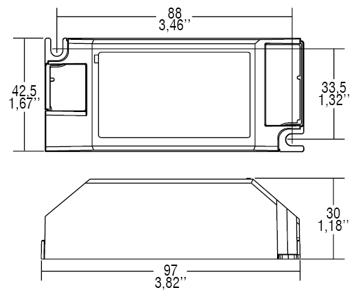 Alimentatore multipotenza fornito di dip-switch per la selezione della corrente in uscita. Alimentatore indipendente IP20, per uso interno (PROFESSIONALE 42). Protetto in classe II contro le scosse elettriche per contatti diretti e indiretti (PROFESSIONALE 42). Alimentatore da incorporare (PROFESSIONALE 42 BI). Utilizzabile per apparecchi di illuminazione in classe di protezione I (PROFESSIONALE 42 BI). PFC attivo. Corrente regolata ±5 % incluse variazioni di temperatura. Morsetti di entrata e uscita contrapposti (sezione cavo fino a 1,5 mm2 / AWG15). Serracavo su primario e secondario per cavi di diametro: min. 2 mm - max. 11 mm (PROFESSIONALE 42). Fissaggio dell’alimentatore tramite asole per viti. Protezioni: termica e cortocircuito; contro le extra-tensioni di rete; contro i sovraccarichi. Protezione termica = C.5.a.