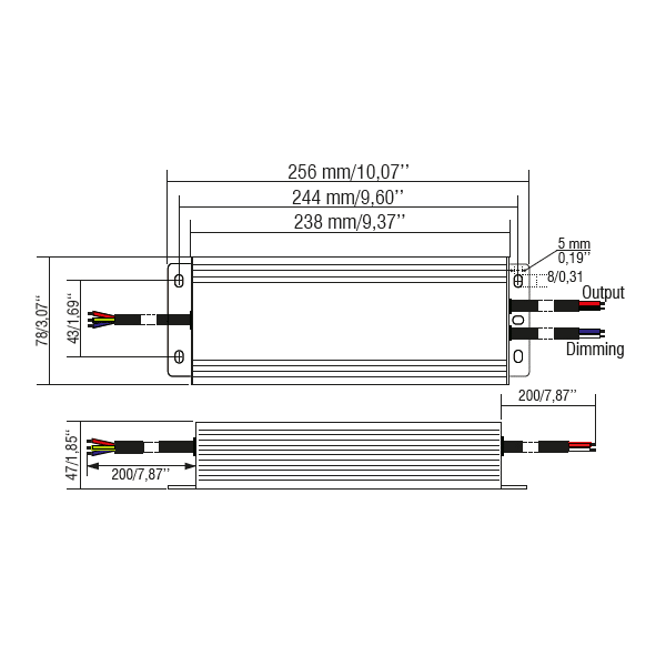 Alimentatore elettronico regolabile con uscita in tensione per moduli LED. Alimentatore indipendente IP66, per uso interno ed esterno. Protetto in classe I contro le scosse elettriche per contatti diretti e indiretti. Fornito di cavi su primario e secondario per il collegamento. Se il cavo di rete è danneggiato deve essere sostituito da personale autorizzato. Protezioni: termica e cortocircuito; contro le extra-tensioni di rete; contro i sovraccarichi.