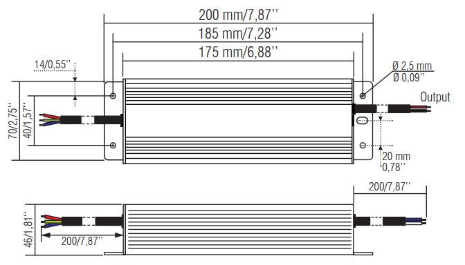 Alimentatore elettronico regolabile con uscita in tensione per moduli LED. Alimentatori indipendenti IP20 (45 W) e IP 66 (80 W), per uso interno ed esterno. 45 W: - Protetto in classe II contro le scosse elettriche per contatti diretti e indiretti. -Morsetti di entrata e uscita contrapposti. - Singola morsettiera su primario e secondario (sezione cavo fino a 0,75 - 4 mm2 / AWG18 - AWG11). 80 W: - Protetto in classe I contro le scosse elettriche per contatti diretti e indiretti. - Fornito di cavi su primario e secondario per il collegamento. - Se il cavo di rete è danneggiato deve essere sostituito da personale autorizzato. Protezioni: termica e cortocircuito; contro le extra-tensioni di rete; contro i sovraccarichi.