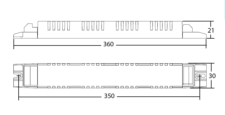 Alimentatore elettronico da incorporare. Utilizzabile per apparecchi di illuminazione in classe di protezione I e II. Adatto al collegamento con apparecchi di emergenza in base alla EN 60598-2-22. Morsetti ad innesto rapido. Morsetti di entrata ed uscita contrapposte (sezione connettori: 0,5÷1,5 mm2). Fissaggio dell’alimentatore tramite asole per viti. Accensione con preriscaldo per una lunga durata della lampada. Protezioni in caso di disconnessione della lampada, lampada guasta o a fine vita. Protezione contro le extratensioni di rete. Classificazione EEI = A2.